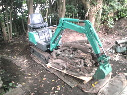 廃木回収 今回のご依頼は、廃木回収です。 既に伐採してあった樹木を回収しました。 こんな時、活躍するのがパワーショベルです。 カニばさみ付きなので、重くて大きい丸太もへっちゃらです。 もちろん伐採も承ります! 今回の場合)廃木回収・処分 ¥8,000