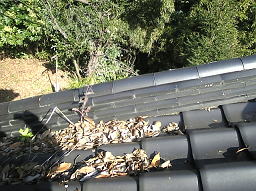 屋根掃除 今回のご依頼は、屋根掃除です。 枯葉が雨どいを塞いでいていました。 この様な場合、機械を使って枯葉を飛ばします。 お隣のお庭へ枯葉を落としたくないなどの場合は 手作業にて行いますので、お気軽にご相談下さい。 料金の目安)基本料金 \5,000〜